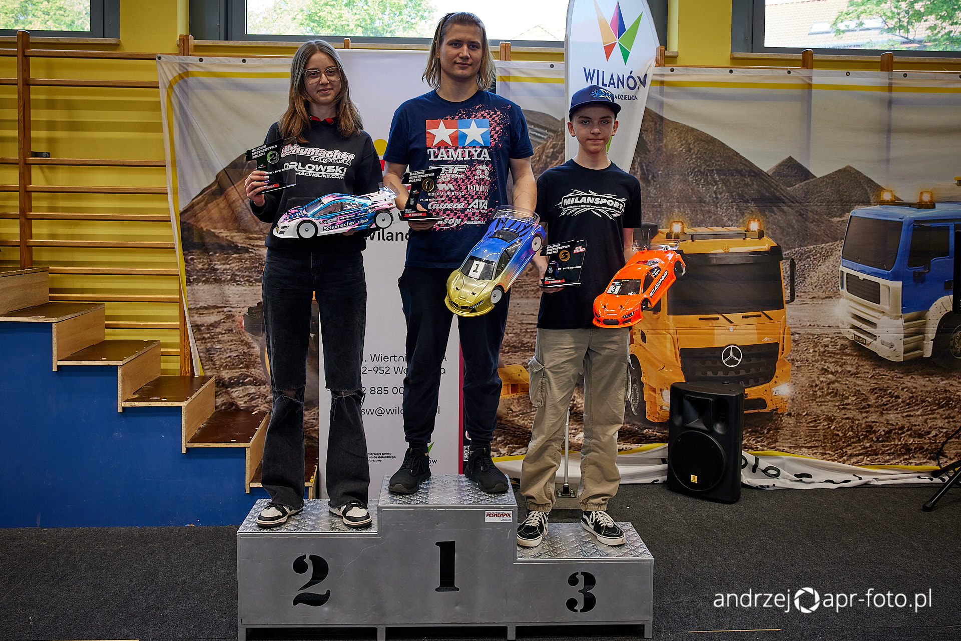Pewną nowością tych zawodów był udział zawodników ze Szkółki RC Błonie. Na wykładzinie stanęło do walki aż 22 młodzików. To dla większości z nich pierwsze zawody. Część z nich już startowała modelami offoradowymi. Jednakże większość po kilku zajęciach w pośpiechu przygotowywała modele do startu. Już w sobotę deklarowali, że to nie ostatnie. Tak więc będziemy śledzili ich poczynania.