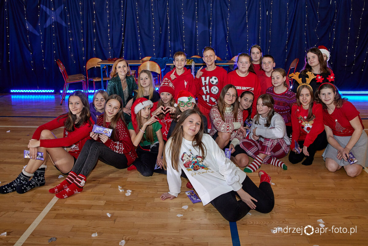Przerwa – to czas dla tancerzy, by mogli zmienić stroje i przygotować się do kolejnych występów. Tym razem Pani Kamila postanowiła zrobić rodzicom niespodziankę. Odbyło się losowanie drobnych upominków. Ale przebiegało ono w nietypowy sposób. Otóż rodzice musieli odnaleźć karteczki z numerkami….. a były one ukryte pod krzesełkami… 🙂